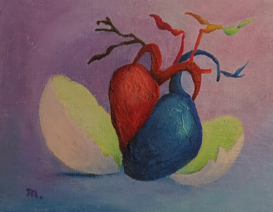 アクリル絵画の作品を描く『心臓アーティスト』です。
