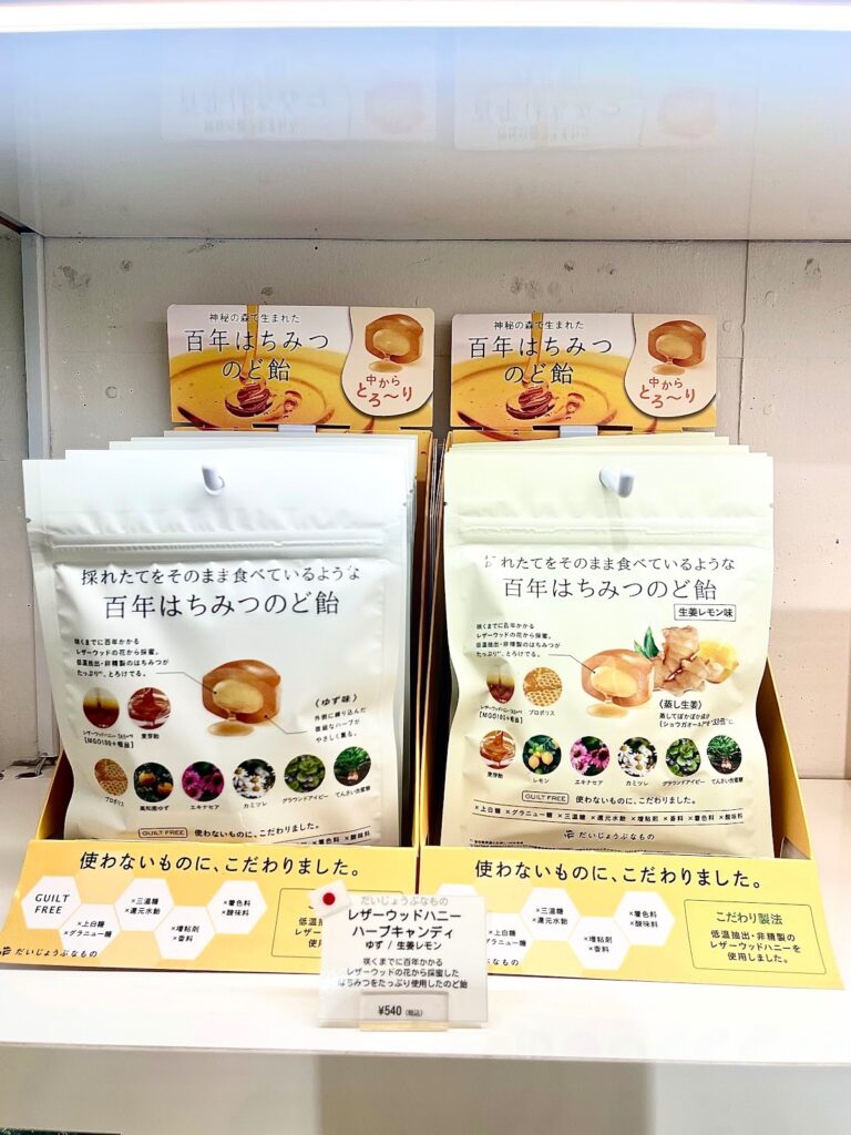 たかくら新産業の百年はちみつのど飴は個包装でシェアしやすく、家族やパートナーへのお土産にぴったり。